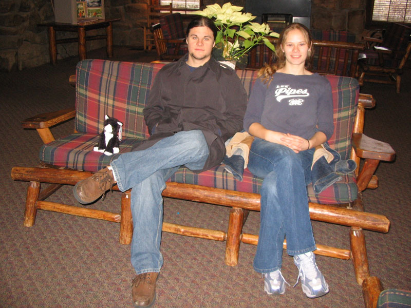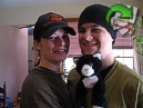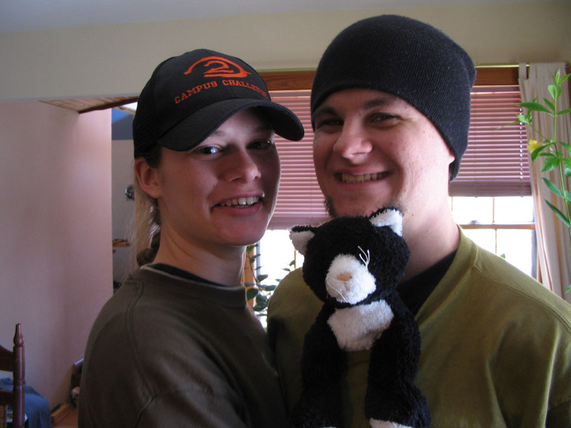 Jonny and Rachel pose with Kitty. |
