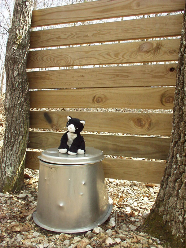 Kitty is annoyed at having his picture taken while using the facilities. |