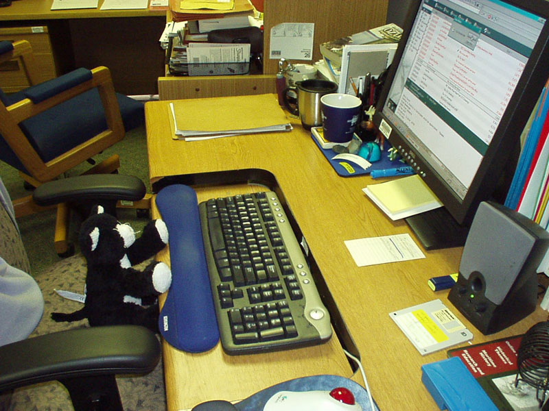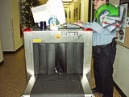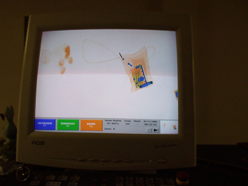 Kitty has to go through security at the Federal Building. |