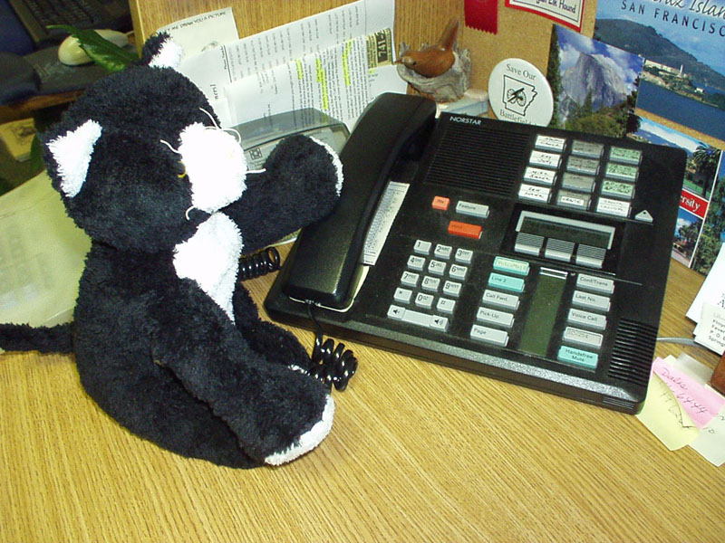 Kitty makes calls to Hong Kong when no one's looking. |