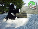 Kitty shows off his might by lifting rocks! |