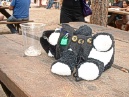 Kitty bravely defends us from a Minotaur. |