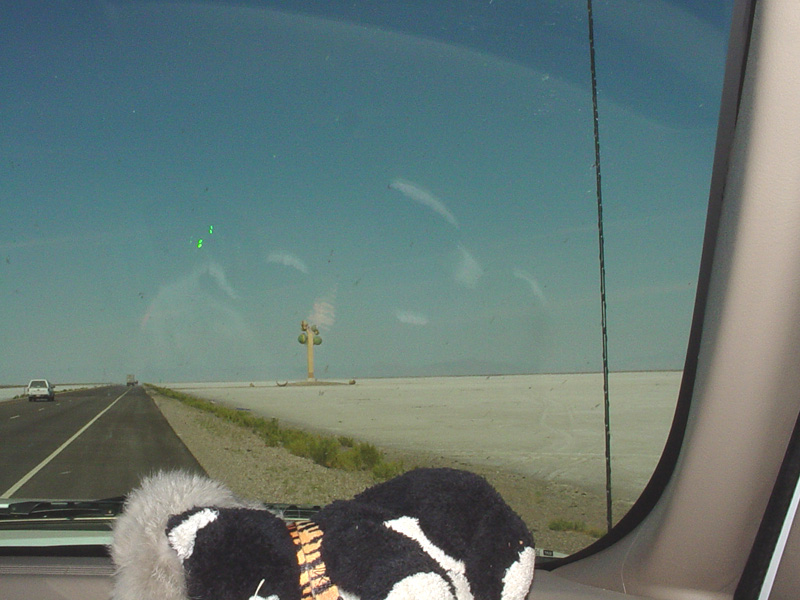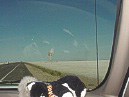 Kitty sleeps across the desolate Great Salt Flats. |