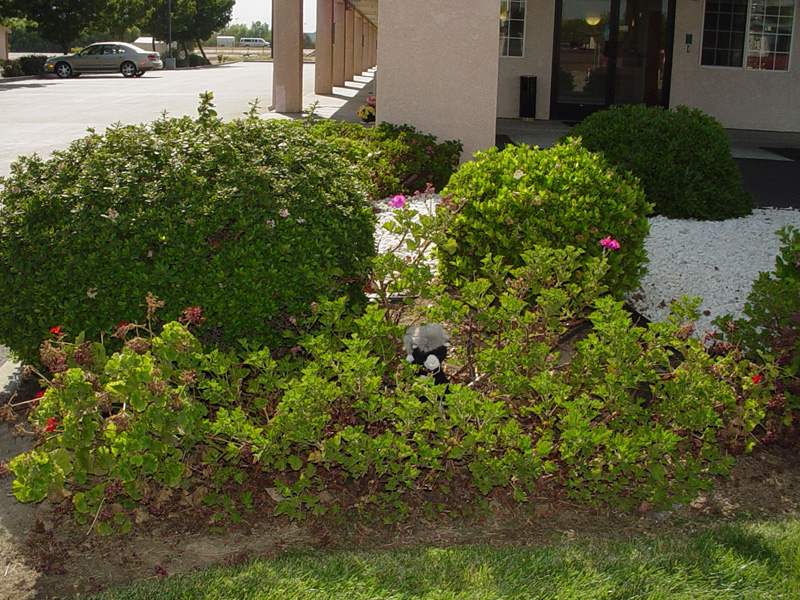 In Willows, California, Kitty plays hide-and-go-seek in the largest geranium he's ever seen! |