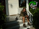 Kitty slides down the